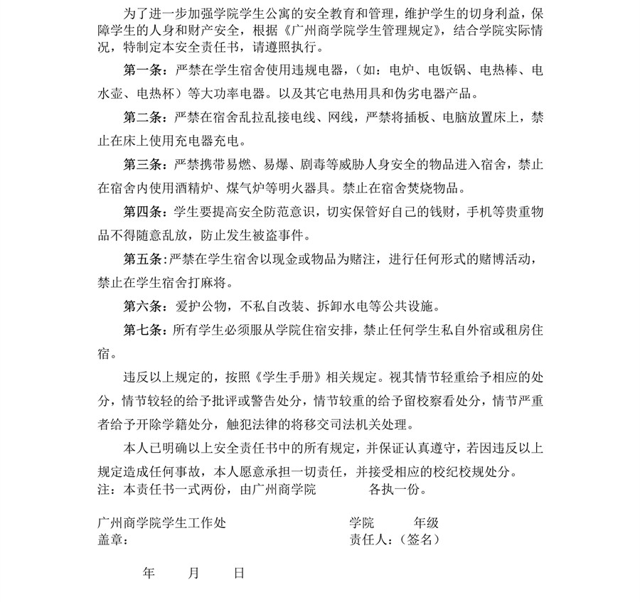 122cc太阳集成游戏学生公寓安全责任书