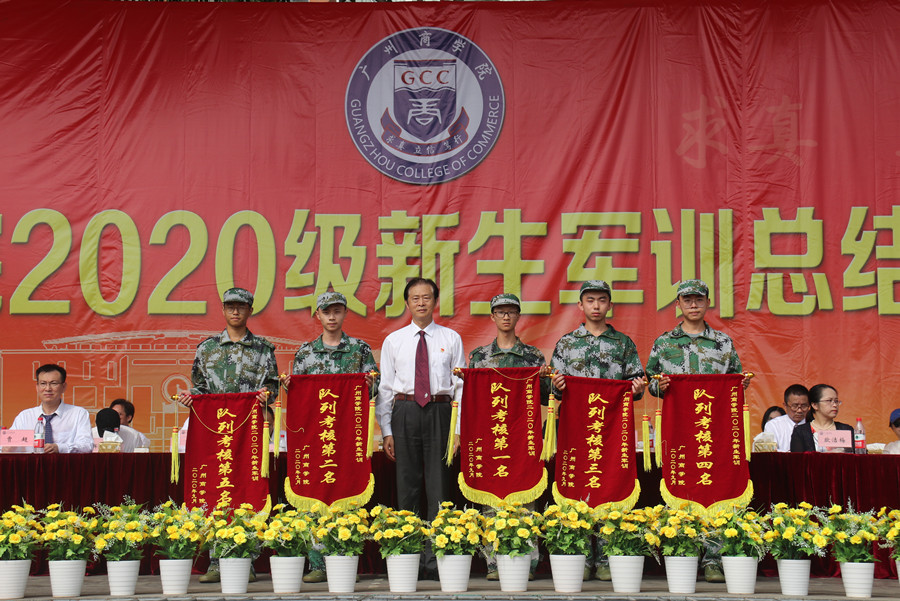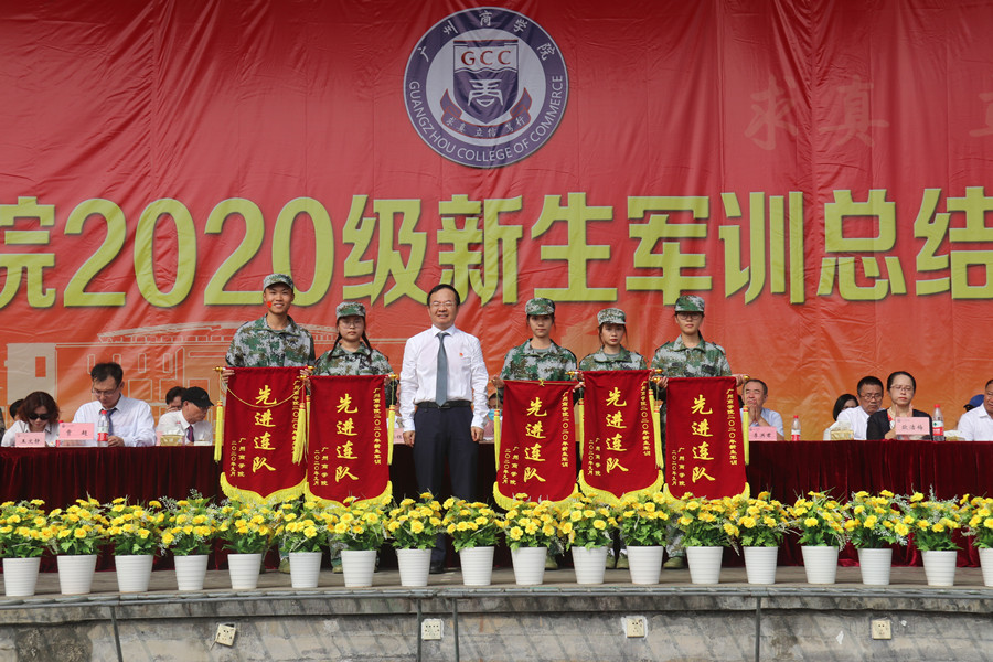 9月30日上午,我校在田径运动场隆重举行2020级军训总结表彰大会。黄埔区人民武装部参谋彭志刚,学校校长黄弢教授,党委书记吕泉荣,副校长王真、欧洁梅、贾超等校领导,军训团团长丁虎,各二级学院(部处室)领导,新生辅导员及2020级全体新生出席大会。大会由军训团政委、学生工作部部长何柏略主持。