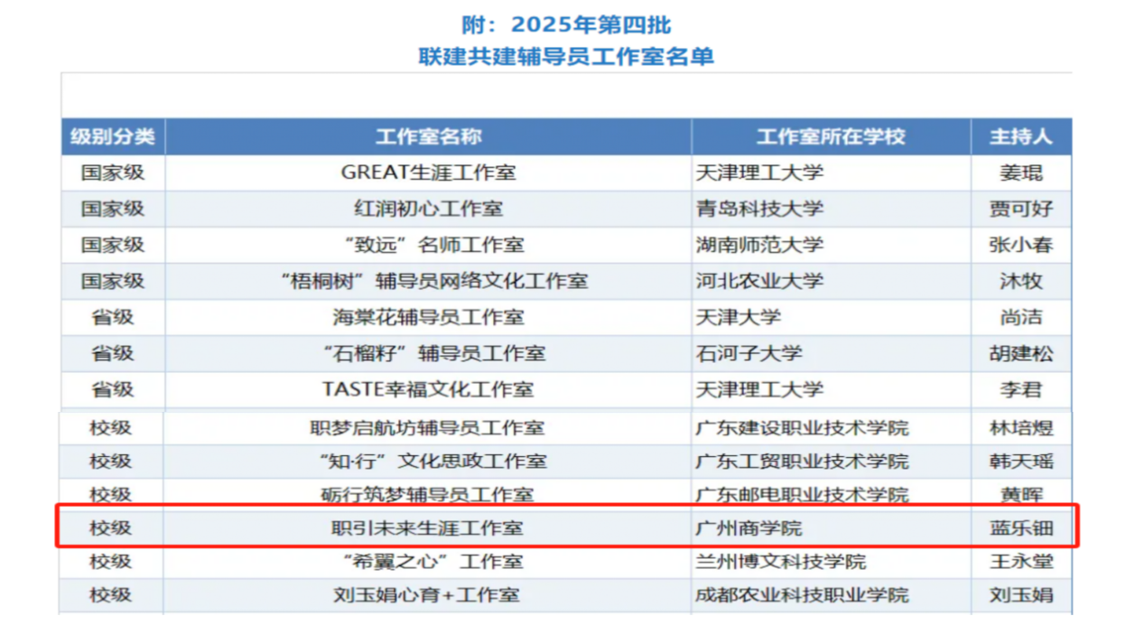 近日,一场凝聚着各高校辅导员智慧光芒与工作热忱的盛会——第四批辅导员工作室联建共建活动在青岛隆重举办。我校职引未来生涯工作室入选第四批辅导员工作室联建共建单位,工作室主持人蓝乐钿参与了此次活动。