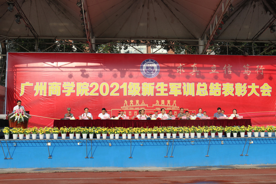 9月30日上午,我校在田径运动场隆重举行2021级军训总结表彰大会。黄埔区人民武装部参谋彭志刚,学校及各二级学院、职能部门领导,军训团团长曾世练,2021级新生承训教官、辅导员及3877名新生出席大会。