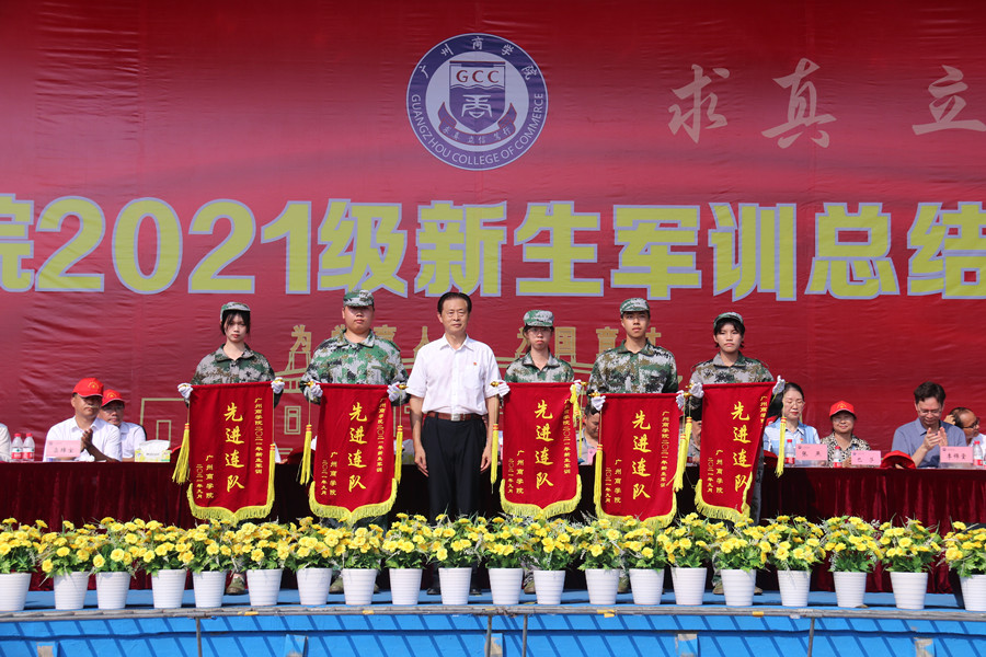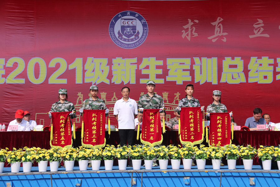 曾世练宣读《122cc太阳集成游戏2021级学生军训团表彰决定》。本次军训共有196位同学获“优秀学员”荣誉称号;法学院指导员陈怡、管理学院指导员杨红烨、经济学院指导员黄泽妙、会计学院指导员姜琳、艺术设计学院指导员唐思、华为ICT学院指导员许丽琴、信息技术与工程学院指导员赵美娟获“优秀指导员”称号;廖钧宇等10位教官获“优秀教官”称号;九连(经济学院)、十四连(艺术设计学院)、十一连(外国语学院)、五连(管理学院)、一连(国际学院)获“先进连队”荣誉称号。现场领导为获奖个人和先进集体颁奖。钟昌标副校长向黄埔区人民武装部赠送纪念品,感谢他们对本次军训的大力支持。