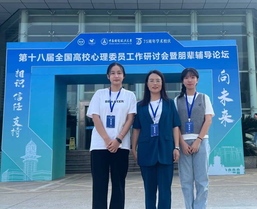 11月3日,第十八届全国高校心理委员工作研讨会暨朋辈辅导论坛在中南财经政法大学举行。为了加强我校心理委员工作队伍建设,探索心理委员工作以及朋辈心理辅导的新方法、新路径,提升学校心理委员的心理自助与助人的能力,充分发挥心理委员在心理健康服务中的桥梁和纽带作用,我校心理健康教育与咨询中心主任张秋艳作为研讨会学术委员会成员带领我校心理委员代表曾美慧同学、林烨同学参会。会上公布了第六届全国高校百佳心理委员及百佳心理委员提名奖名单。曾美慧同学荣获第六届全国高校百佳心理委员、林烨同学荣获百佳心理委员提名奖。